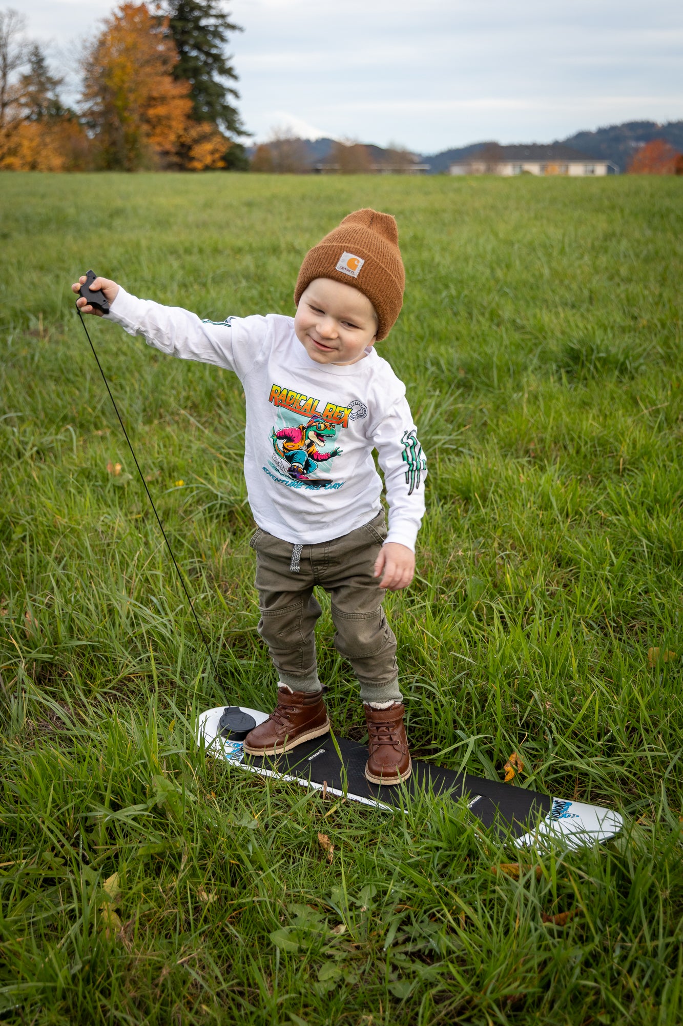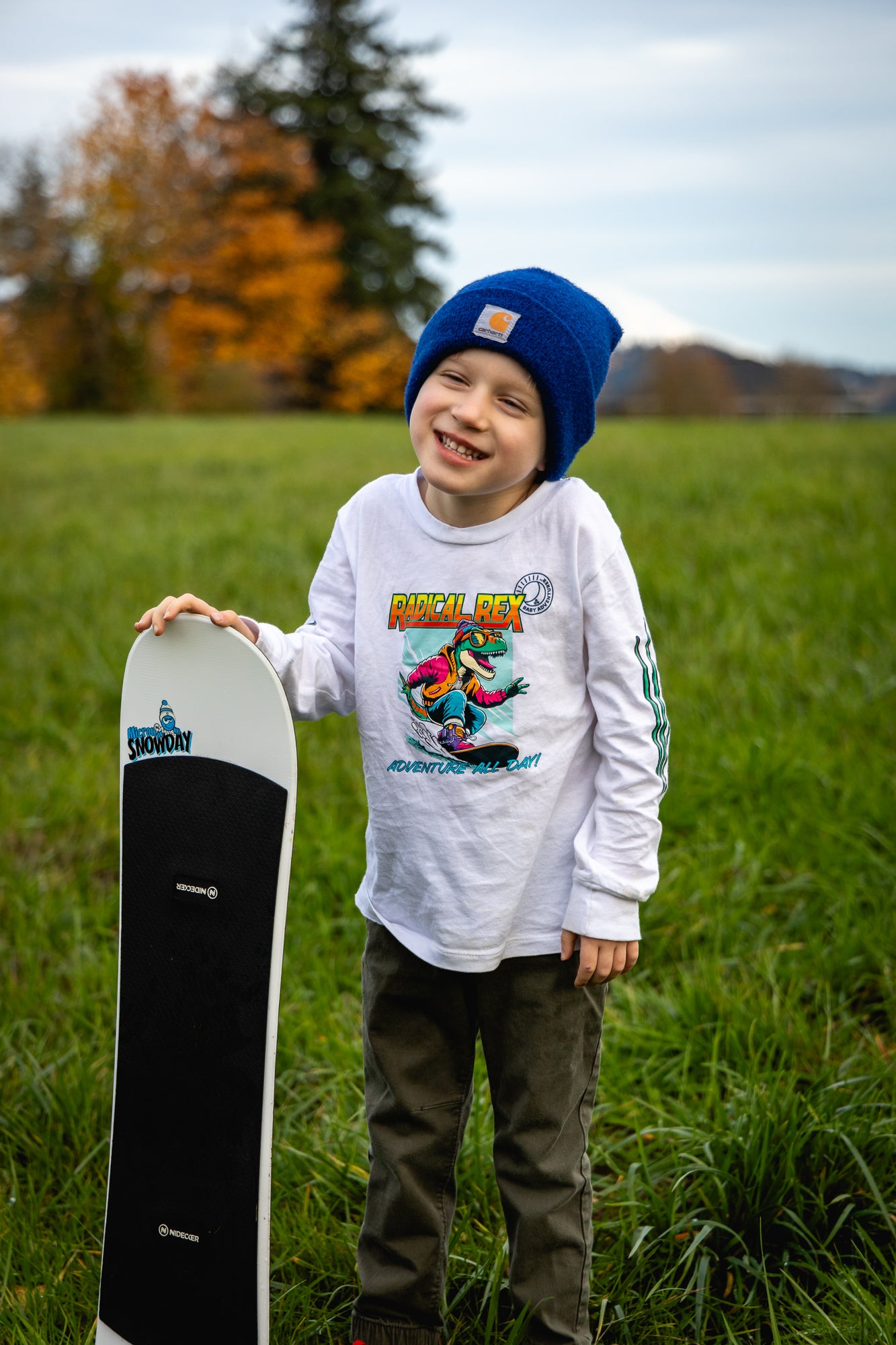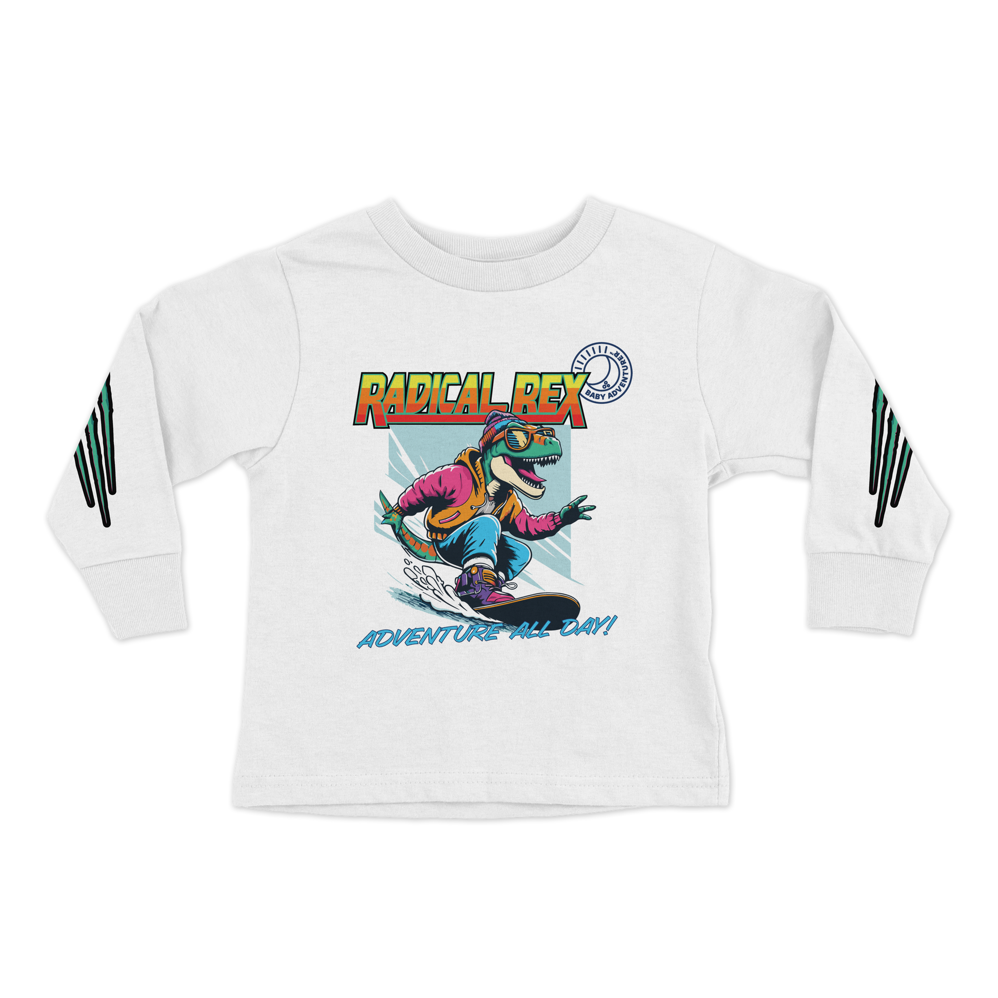 Dino Snowboarder Radical Rex - Baby Adventurer™ - Dinosaur Snowboarding Toddler Long Sleeve Tee
